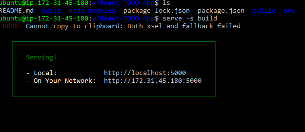 Note that the above command should be run in the root. If elsewhere, edit the path to the build folder accordingly. And we’ve used the port to be 3000. You may use 5000 as well.