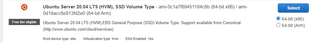 We’ll be going with Ubuntu server 20.04. You may choose another, but the rest of the steps might vary slightly. Also, do NOT choose an option that doesn’t have the ‘Free tier eligible’ tag, otherwise, you’ll be having to sell off some jewellery to pay the AWS bill.